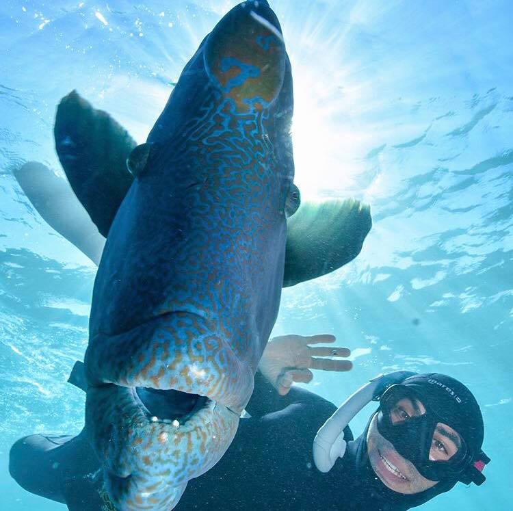 大型隆头鱼,个性温和。因为高高隆起的额头,就像拿破仑戴的帽子,所以有“拿破仑”之称。